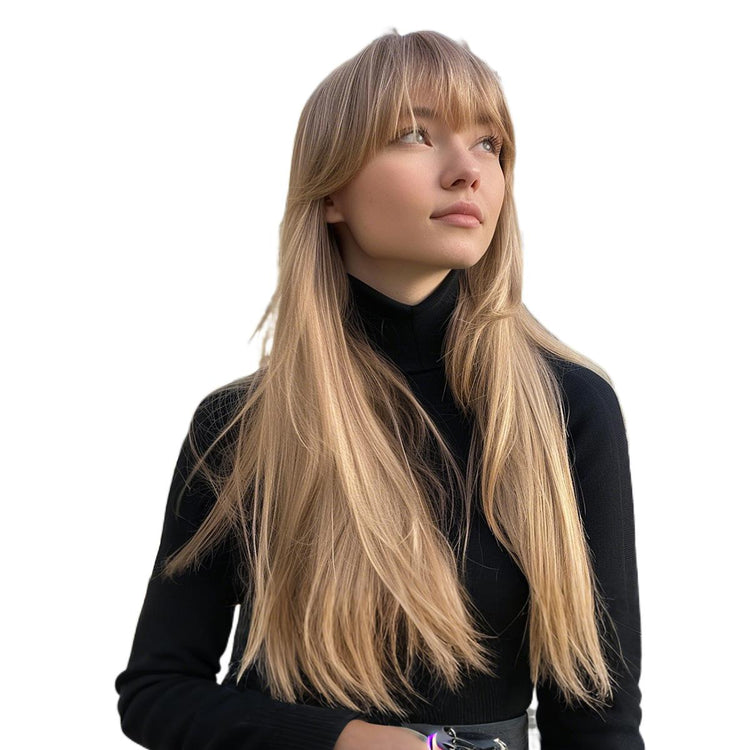 Hot-Selling Fashion Wig for Women with Bangs, Light Brown Long Straight Hair, High-Temperature Fiber Wig, Same-Day Delivery