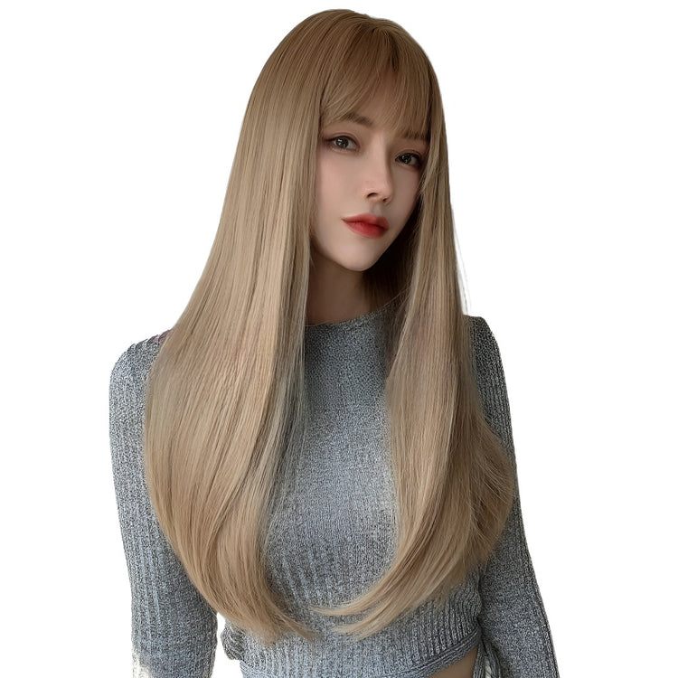 Hot-Selling Fashion Wig for Women with Bangs, Light Brown Long Straight Hair, High-Temperature Fiber Wig, Same-Day Delivery