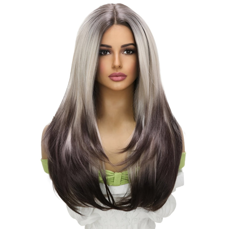 Hot-Selling Lace Front Wig Brown Gradient Highlight Long Straight Hair Japanese Silk Wig
